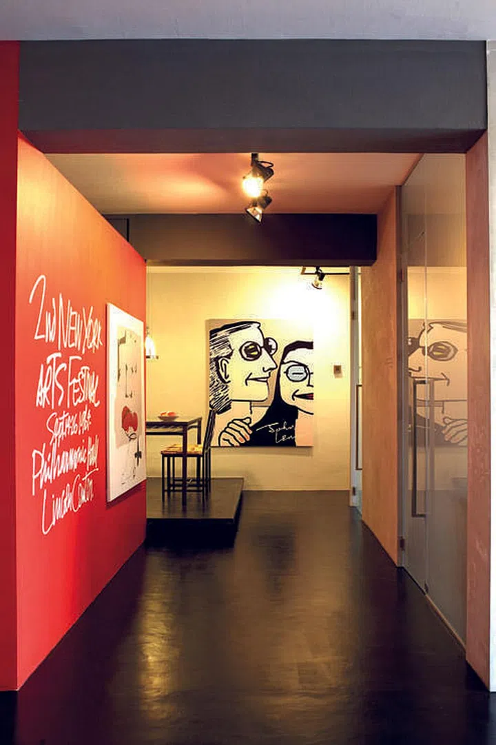 This homeowner filled her space with reproductions of pictures she loves, like this graphic of John Lennon and Yoko Ono.