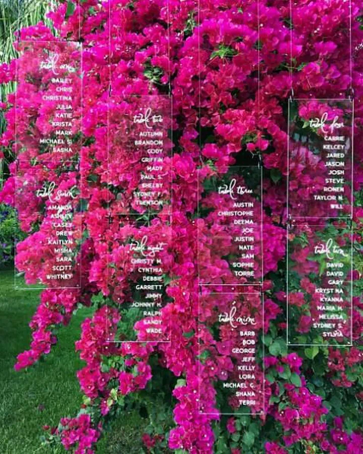 This winning pairing of fuchsia bougainvillea and clear acrylic panes will throw your guests off with its sheer prettiness and ingenuity.