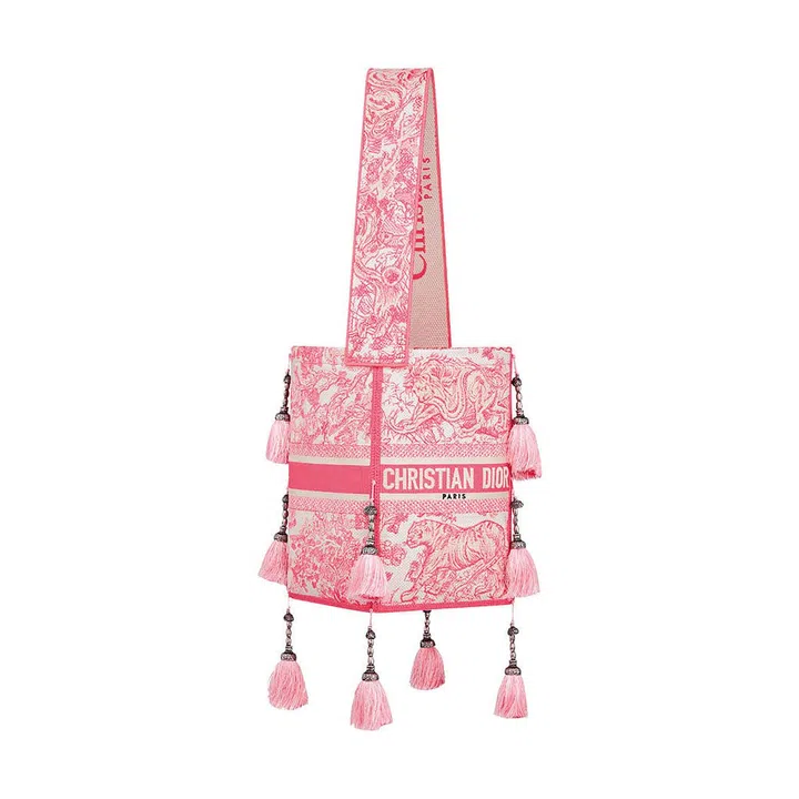 Dior's D-Bubble Bucket bag leaves no room for doubts and is all about that je ne sais quoi. From its bright pink hue to its iconic monogram logo, there are so many things to love about this piece. But what makes it stand out from the rest you might ask? Well, it would have to be the handmade tassels that add movement to the design.