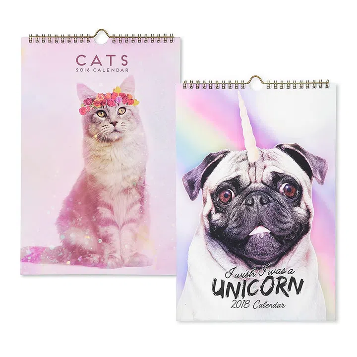 The ‘Cats’ and ‘I wish I was a unicorn’ calendar which features adorable animals with thought bubbles saying “I wish I was a unicorn”..