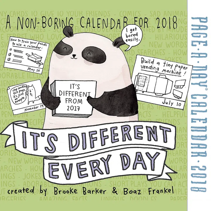 Everyday is different with this calendar from Boaz Frankel and Brooke Barke. With a background in illustration and knowledge of animals, the pair co-created the It’s Different Every Day Page-A-Day Calendar.