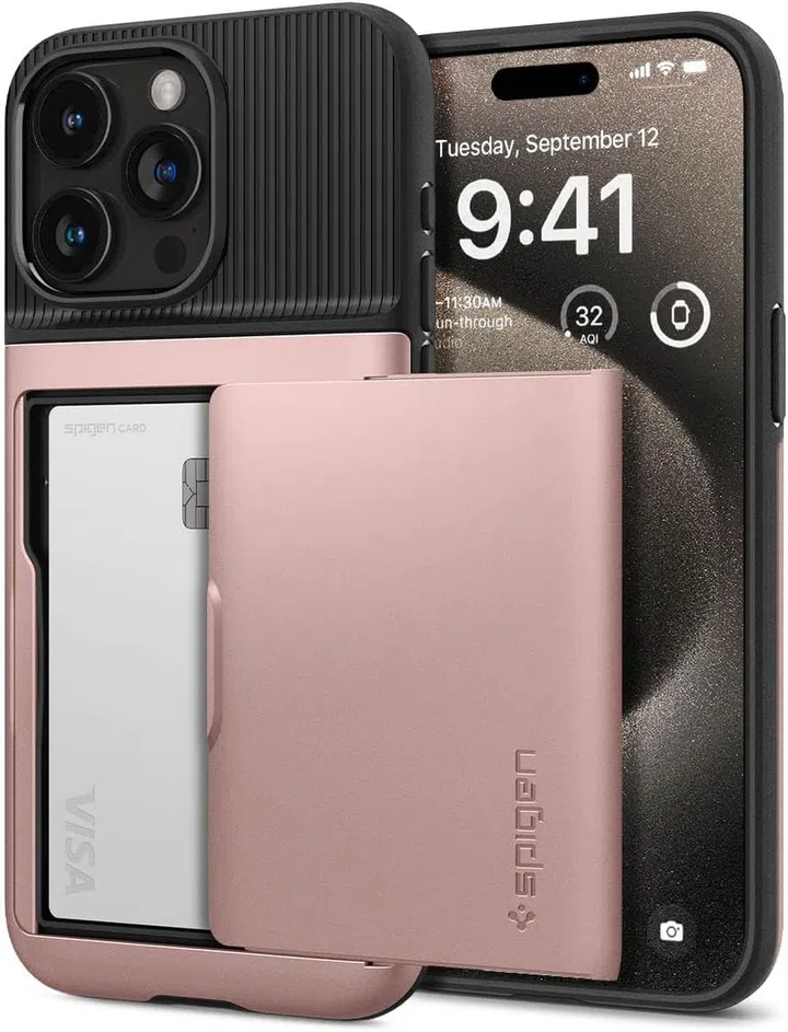 The case also features a sliding back panel that reveals a hidden card slot, where you can store up to two cards or cash.