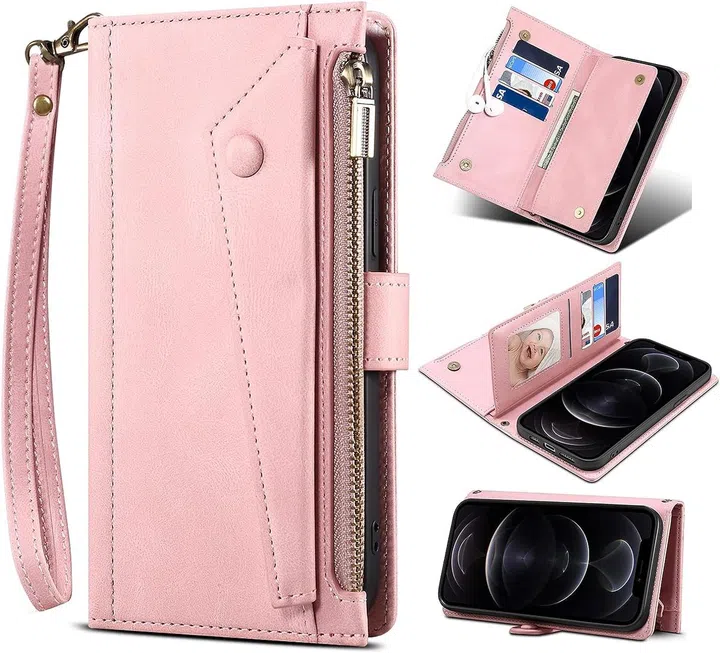 This pretty yet practical wallet case offers multiple card slots, a secure zipper pouch for small accessories, and a built-in stand for hands-free viewing.