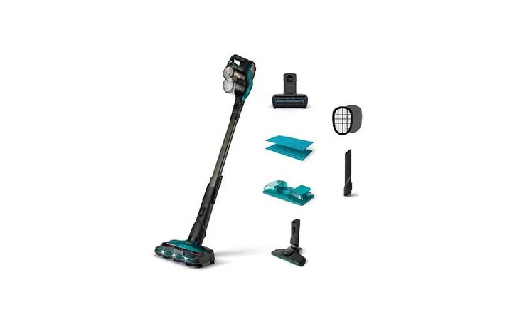 The Philips XC8147/01 Speed Pro Max can vacuum and wet wipe for up to 80min at a go. Its Unique Aqua nozzle not only vacuums, but it wipes dust, dirt, and stains in one go. You can even add your favourite detergent to the water tank to remove more bacteria.