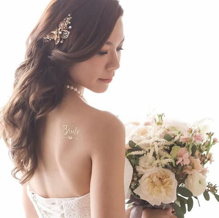 Not ready for that permanent commitment? Consider flash tattoos, which are pretty metallic jewellery-inspired tattoos that add a pretty, shimmery and fun touch to your big day look.