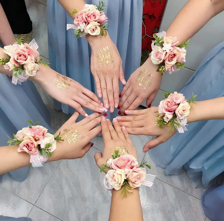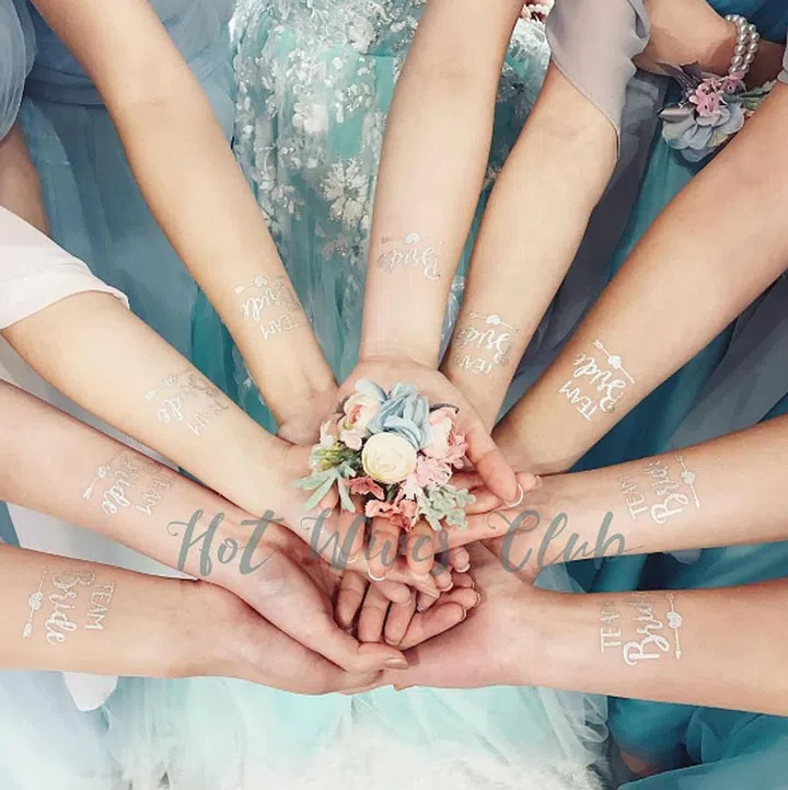 You can also get your bridal party in on the flash tattoo trend in place of regular corsages.
