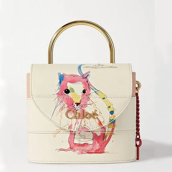 Featuring a rat artfully presented in watercolour, Chloe’s Aby Lock bag celebrates the Year of The Rat with this adorable collection. The back of the bag sees the watercolour illustration of the brand’s logo “Chloe”. It also carries the bag’s signature elements, such as the curved gold handle the lacquered chain and key – this time rendered in glossy red – decorating the side of the bag. Carry it as a shoulder bag next to a spring-perfect floral dress and pink mules.