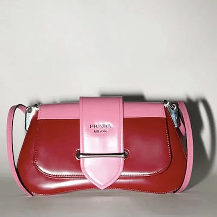 Created exclusively for Luisaviaroma, this special edition Prada bag takes after the silhouette of the brand’s famed Sidonnie shoulder bag. Featuring the classic sinuous shape and front flap strap, this version of the Sidonie sports contrasting colour tabs in glossy candy pink and dark red. With its retro charm and sleek sophistication, this number is a must-own for designer bag collectors and Prada fans alike.