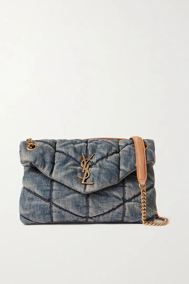 Loulou Puffer Small Suede-Trimmed Quilted Denim Shoulder Bag, $3,007, Saint Laurent at Net-a-Porter