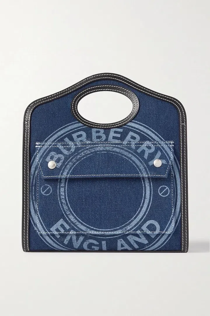Pocket Mini Leather-Trimmed Printed Denim Tote, $1,458, Burberry at Net-a-Porter