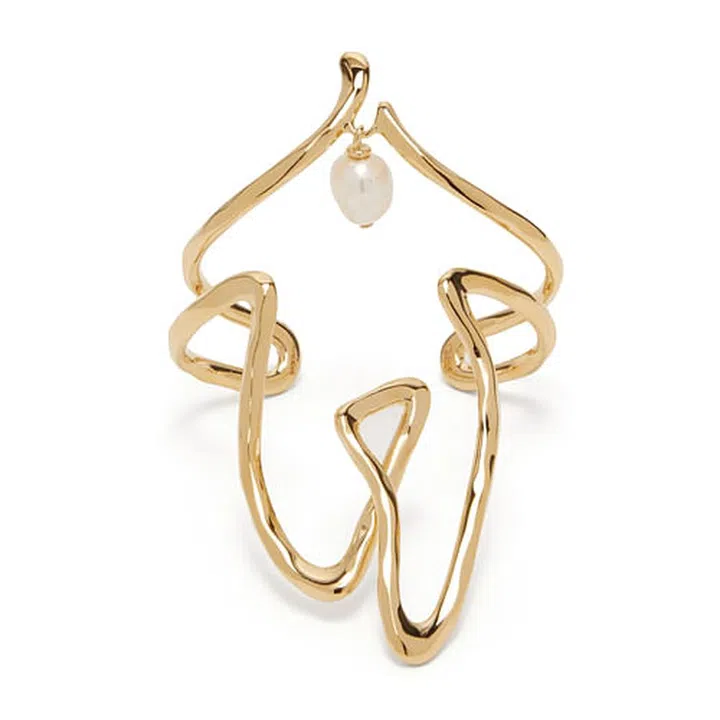 Crafted from a slender gold-tone band that is moulded to create the silhouette of the female form and finished with an iridescent pearl drop to steal the show, this cuff is practically the object of a minimalist’s dreams and will make a subtle statement as an arm candy.
