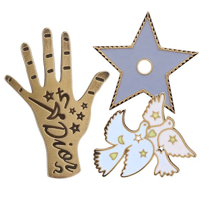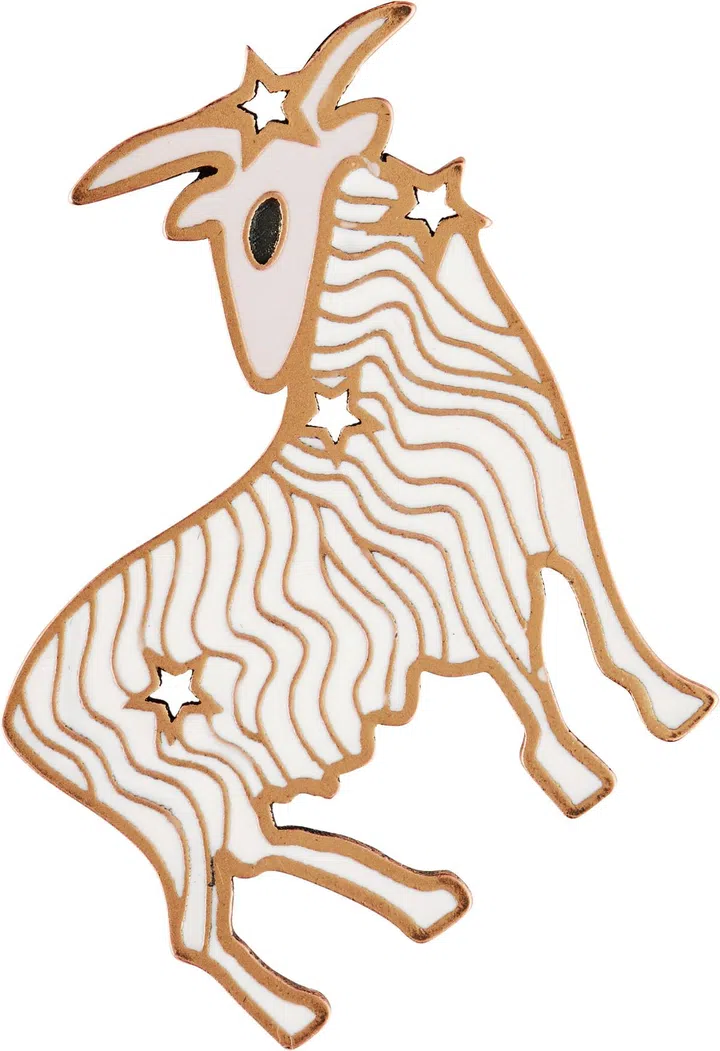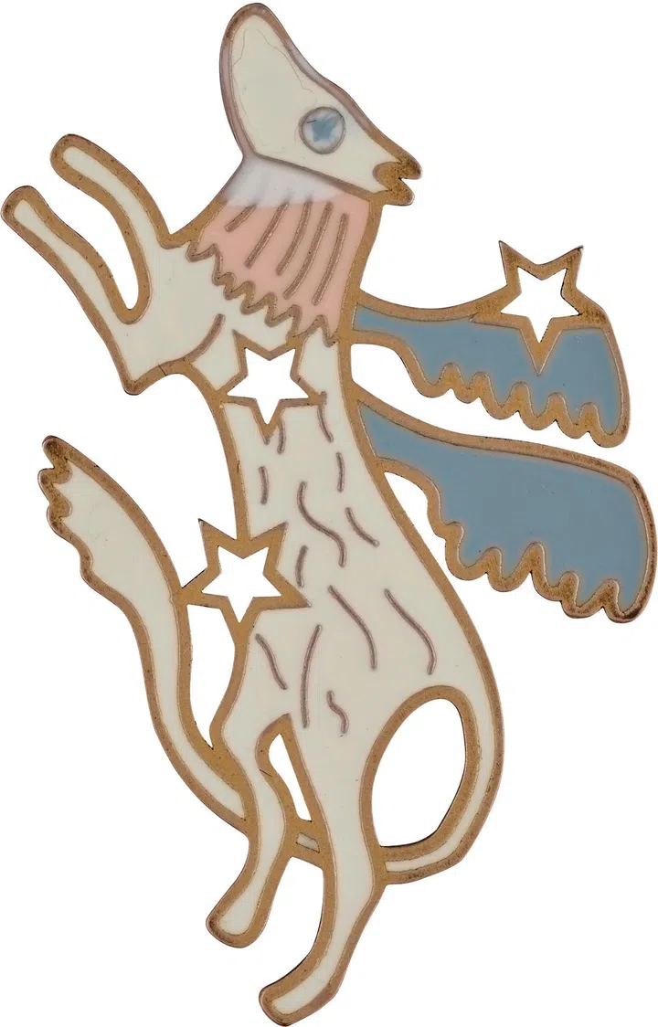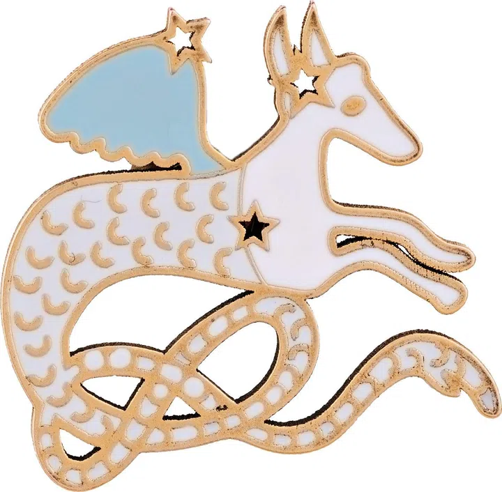 As for the badges themselves, each exquisite enamel charm (the entire 26-piece suite is slated to drop in late-May or June) has been painted by hand, with the designs taking a leaf from the singularly whimsical style of Jean Cocteau of Les Enfants Terribles and Orpheus fame. Thematically speaking, there are 12 Zodiac signs and 14 lucky charms (and yes, you can buy each trinket separately should you so decide.)
