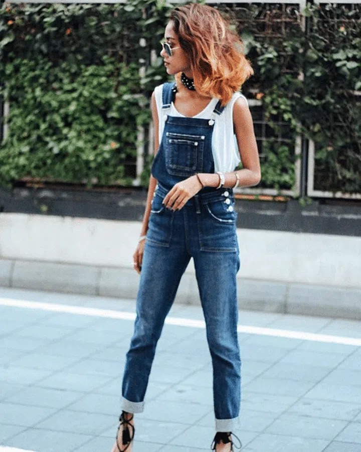 Your best bet would simply be denim overalls – go with a white sleeveless shirt because #SGweather, and spice things up with a chic polka dot neck scarf. Take a leaf out of Trishna’s book and opt for lace-up sandals to look effortlessly put together.