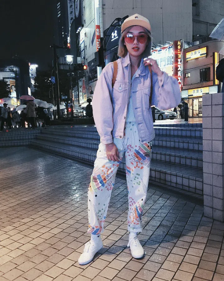 Channel retro vibes with a fun getup like Karen’s – match a pair of whimsical baggy jeans with a light purple denim jacket, then throw on your favourite distressed sneakers. Don’t leave out the quirky pink shades and voila, you’ll look and feel like a magical hippie unicorn.
