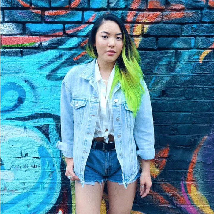 Your denim pieces don’t necessarily have to be of varying shades of blue if you go with a “theme” and focus on a statement colour. To complement the unique flame design on her jacket, Karen rocked a fiery red tank top, with cute cherry earrings to boot. This makes for a very cohesive ensemble that’s in no way boring.