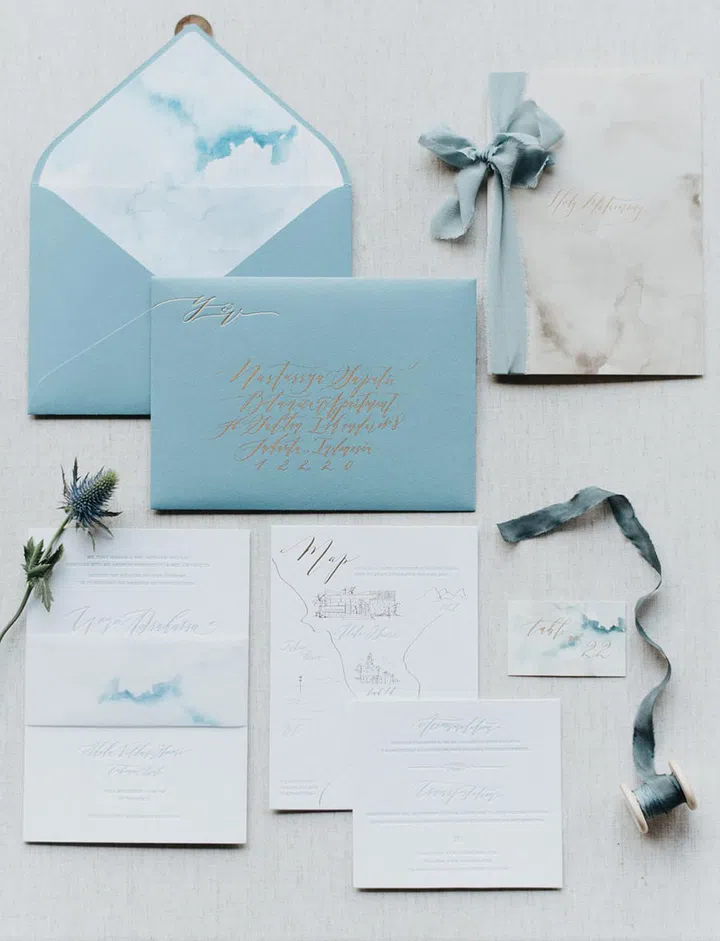 The wedding stationery, in soft watercolour hues, reflected the wedding theme.