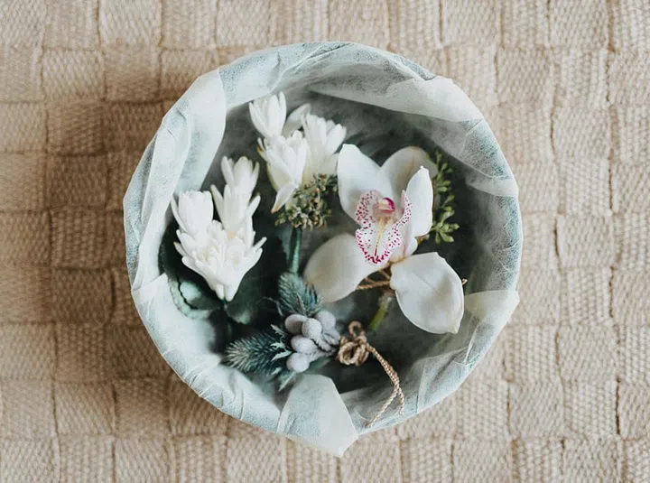 "Personal touches included the hand-sewn bouquets of tuberoses that my bridesmaids and I carried for the ceremony. The tuberose was my late father's favourite, and walking down the aisle with the bouquet was like having him beside me."
