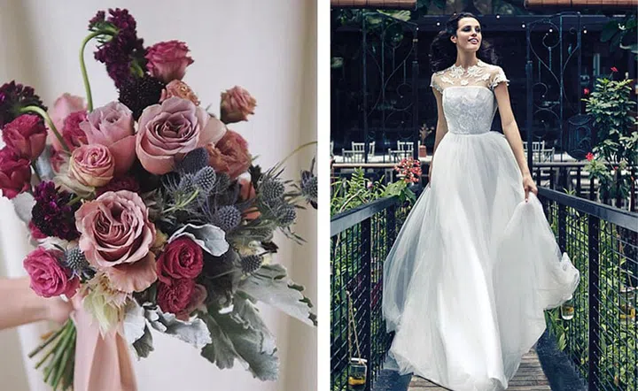 Bouquet image: @floralmagic_/Instagram Gown image: Her World Brides