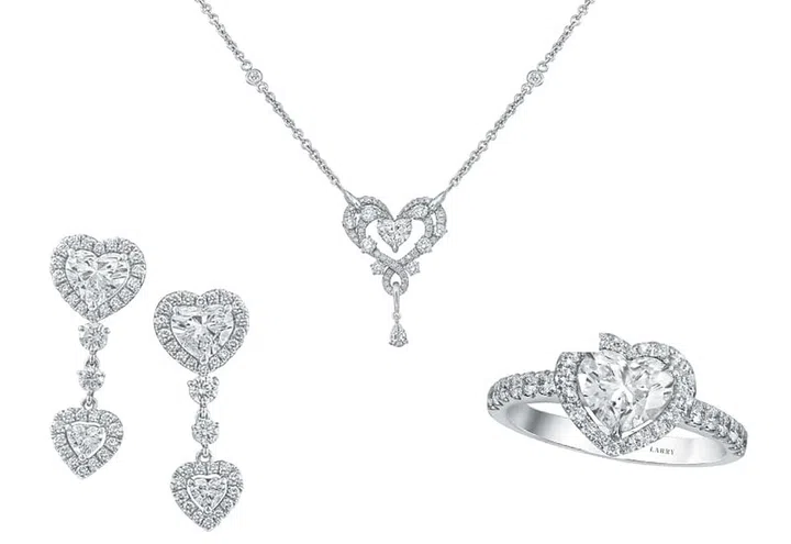 The Living Love collection from Larry Jewelry focuses on fine details and delicate heart-shaped designs. Inspired by the concept of continuous love that is celebrated every day, the handcrafted 18K white gold and diamond pieces include a necklace, earrings, a classic heart-shaped ring and a fluid bracelet that will be perfect for any bride.