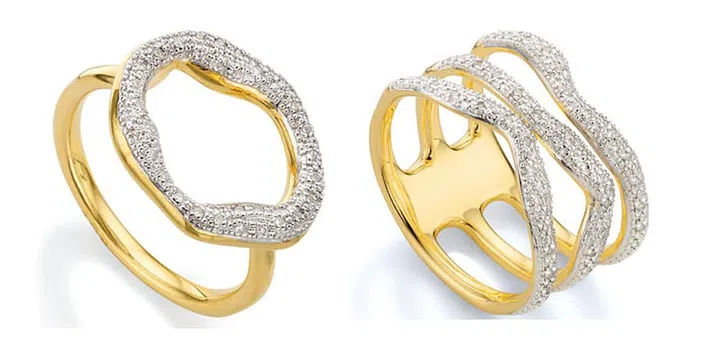 If you’re looking for simple, stylish jewellery to complement your minimalist wedding gown, discover the iconic Riva collection from Monica Vinader. Inspired by the constant motion of the sea, these beautiful designs, available in sterling silver, yellow gold and rose gold finishes, are very chic and modern. The triple band rings and wrap around earring can be effortlessly paired and layered together to match your wedding and evening outfits, or everyday glamour after your big day.