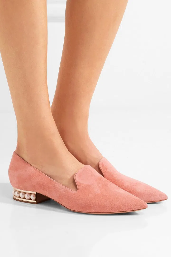 Sophisticated and exceedingly demure, these pair of buttery antique-rose suede loafers from Nicholas Kirkwood sure is a coy seductress. We love the lustrous row of faux pearls, they add an opulent touch to the loafers and is a pretty contrast to the masculine silhouette.