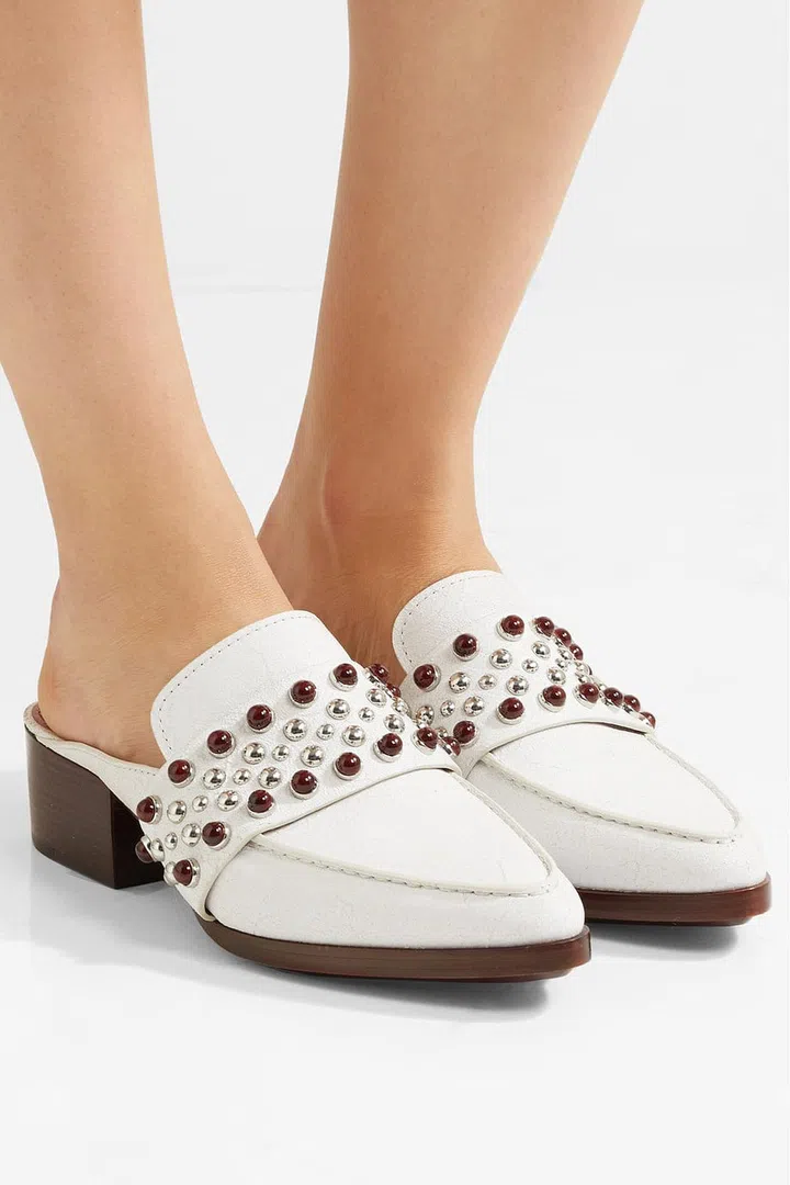 3.1 Phillip Lim, Quinn embellished cracked-leather slippers, $451 from Net-a-porter