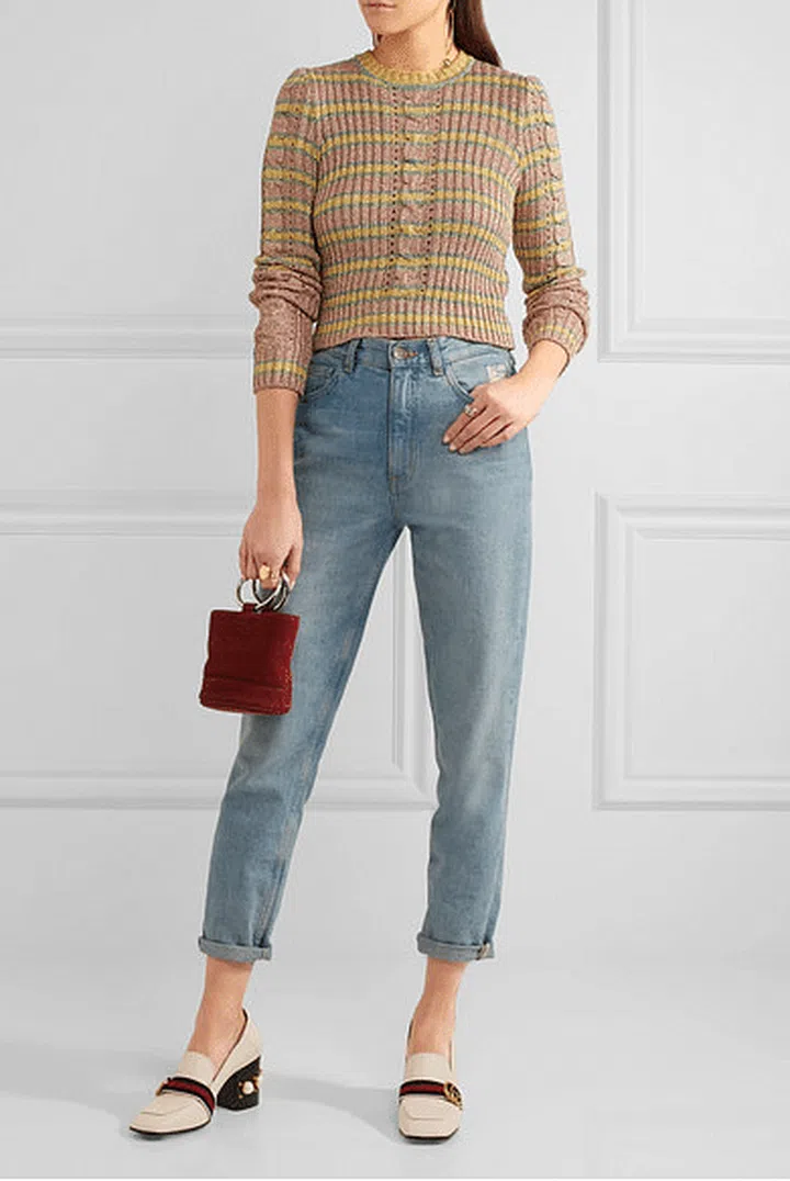 So this is like a cheeky cousin of the previous Fendi embellished loafers. Why? Because the top is now laced with candy-hued shearling and kaleidoscope studdings so vibrant we can’t stop smiling just by looking at it! Wear this with a simple and plain outfit, because you really want the attention to be on the loafers.