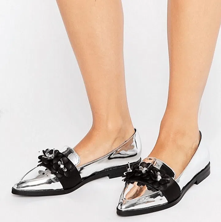 You can’t miss out on these chrome loafers! Slightly futuristic, it reminds us of Chanel’s space-inspired collection, especially the floral embellishments. We want all attention to be on these pair of flower loafers, so pair it with a simple shift dress.