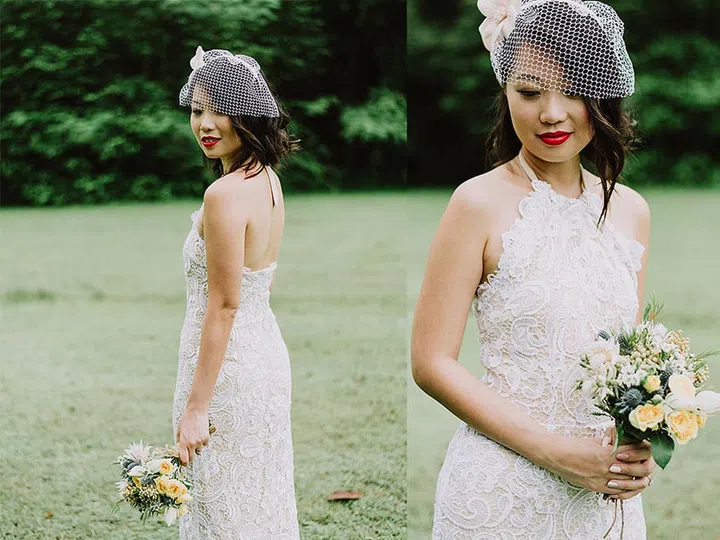 Jeanne rocked a delicate lace halter-neck number and accessorised it with a trendy fascinator for her solemnisation at The White Rabbit.