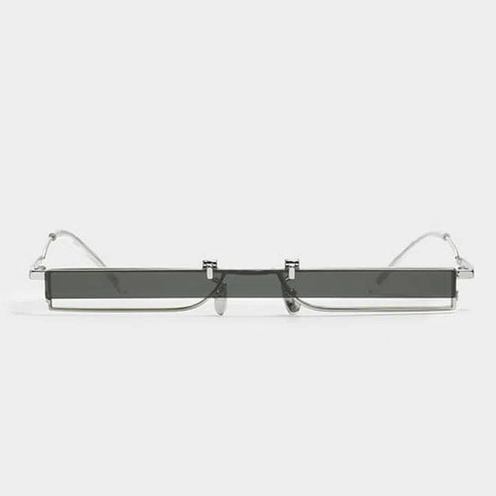 Street style-favourite sunglass brand from Korea Gentle Monster delivers an intriguing rendition, the Mohenic 02, that comes with a thin metallic silver frame and a single narrow rectangular lens.