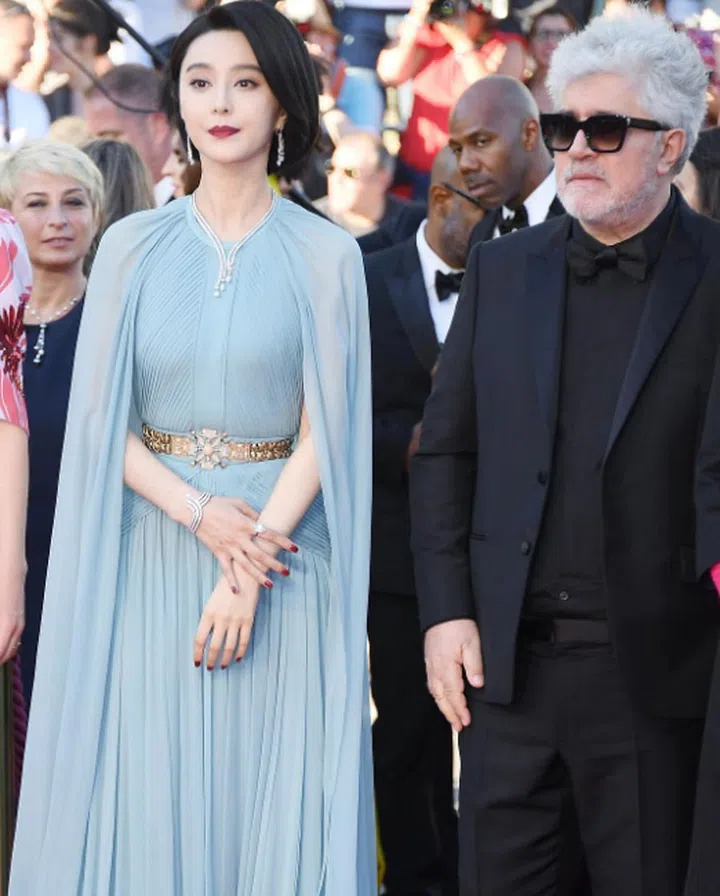 If there's ever a reason to don something blue for your big day, Chinese star Fan Bingbing is it. The powder blue complements her fair skin, which she further emphasises with a red lippie and nails.