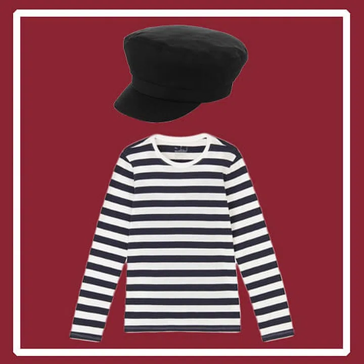 Channel a spiffy nautical vibe by pairing this chic pullover with a navy blue cabbie hat, a pair of white denim jeans and some espadrilles.