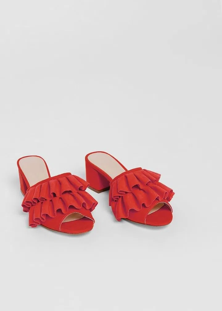 By now we're all familiar with the convenience that a pair of mules affords. This Love, Bonito pair is amped up with ruffle details that adds femininity, so play it up with a pleated skirt. It is also available in black.