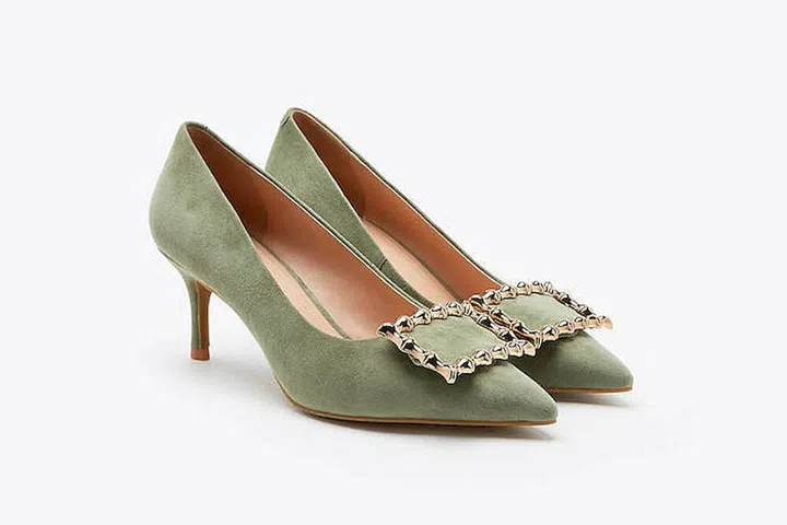 Buckle details are nothing new on footwear. Yet, they remain enduring favourites for brands such as Roger Vivier and Tory Burch. If you don't want to spend so much, pick up this Pazzion lamb suede pair. Also available in black.