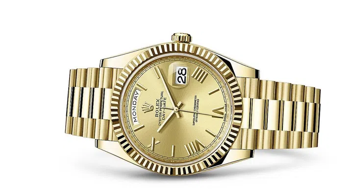 Speaking of being distinctive, the Rolex Oyster Perpetual Day-Date 40 in yellow gold stands out immediately for its bold yet understated hue, making it an impressive and truly unforgettable accessory for your dad.