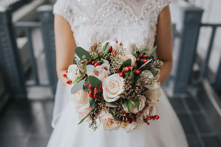 "The bridal bouquet, car décor as well as the decoration at the solmenisation hall were all Christmas-inspired."