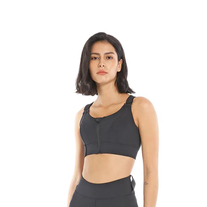 You can wear this adjustable sports bra underneath a top if you’re at the gym or on its own for workouts. The zip is located on the front because the last thing you’d want to do is to reach around your back to unzip your bra after arm day.