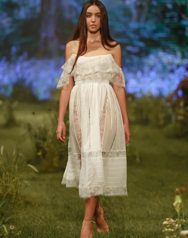 Having an outdoor solemnisation? Go for a breezy look in airy layers, fluttery sleeves and a graceful off-the-shoulder neckline.