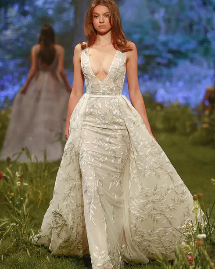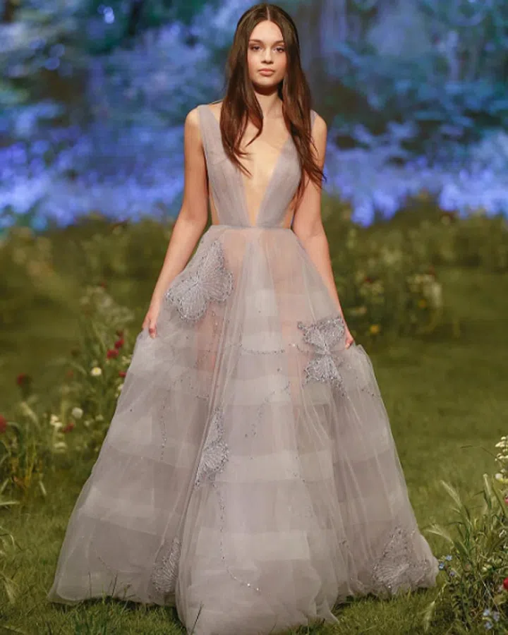 Designer Paul Vasileff's bridal collection for Paolo Sebastian Spring 2017 is a dreamy mix of diaphanous layers, billowing sleeves, romantic pastel hues and embroidery depicting delicate summery flowers and butterflies. Check out the collection below.