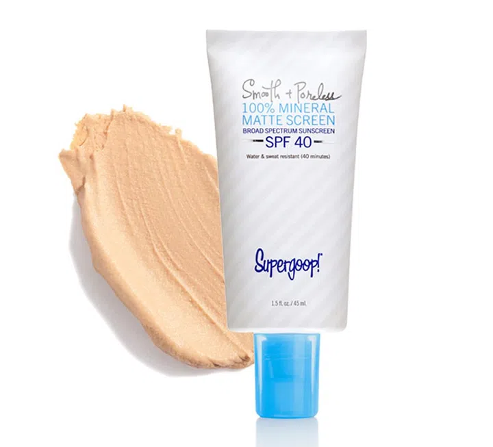 Supergoop! Smooth and Poreless 100% Mineral Matte Screen SPF 40, $48, available at Sephora from 2 August 2018.
