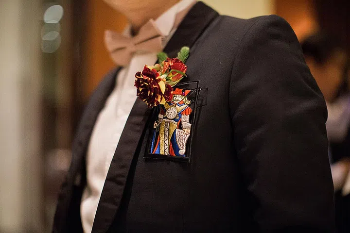 Gown for the tea ceremony and second march-in: Rusly Tjohnardi Ateliar (tjohnardi@yahoo.com); gown for first march-in: F&love (Hong Kong); earrings: Kavant & Sharart (hello@kavantandsharart.com); shoes: Jimmy Choo (www.row.jimmychoo.com); his suits: made in Hong Kong; bow tie: Lanvin (www.lanvin.com); shoes: Gianvito Rossi (www.gianvitorossi.com)