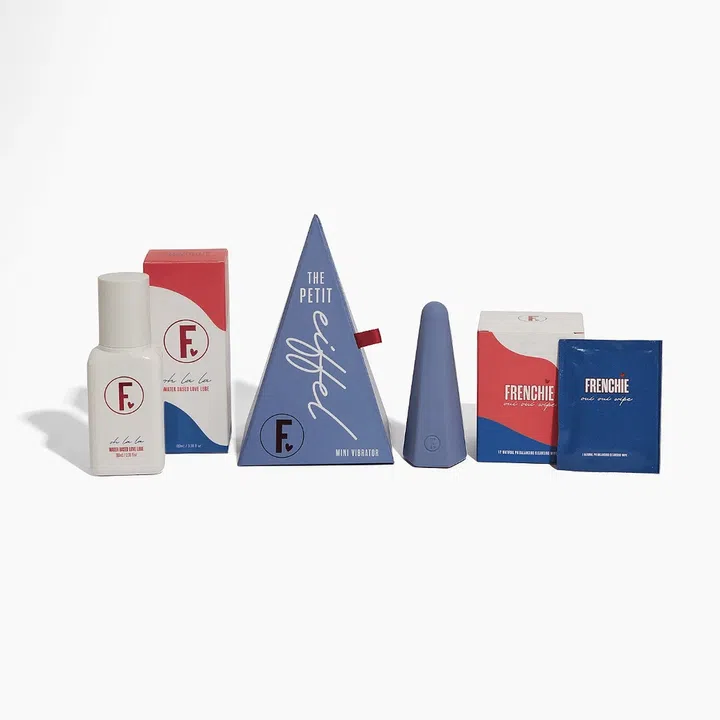 Created with self-pleasure in mind, the Petit Plaisir bundle consists of The Petit Eiffel mini vibrator, Oh La La Love Lube and a 12-pack of the Oui Oui Wipes.