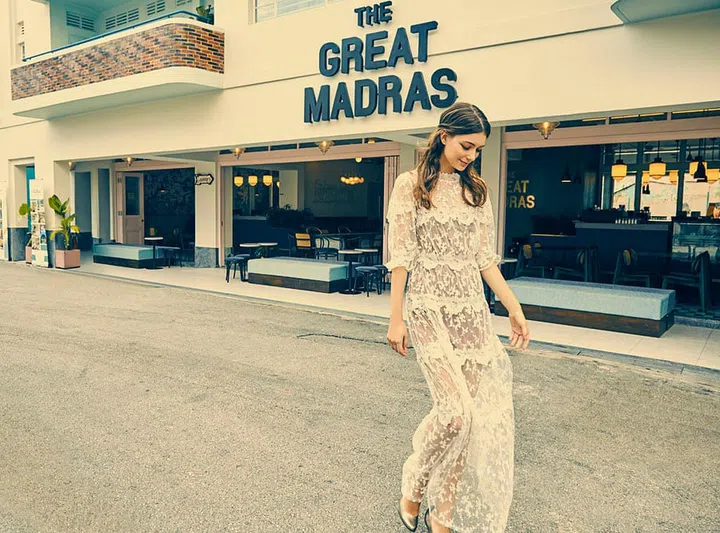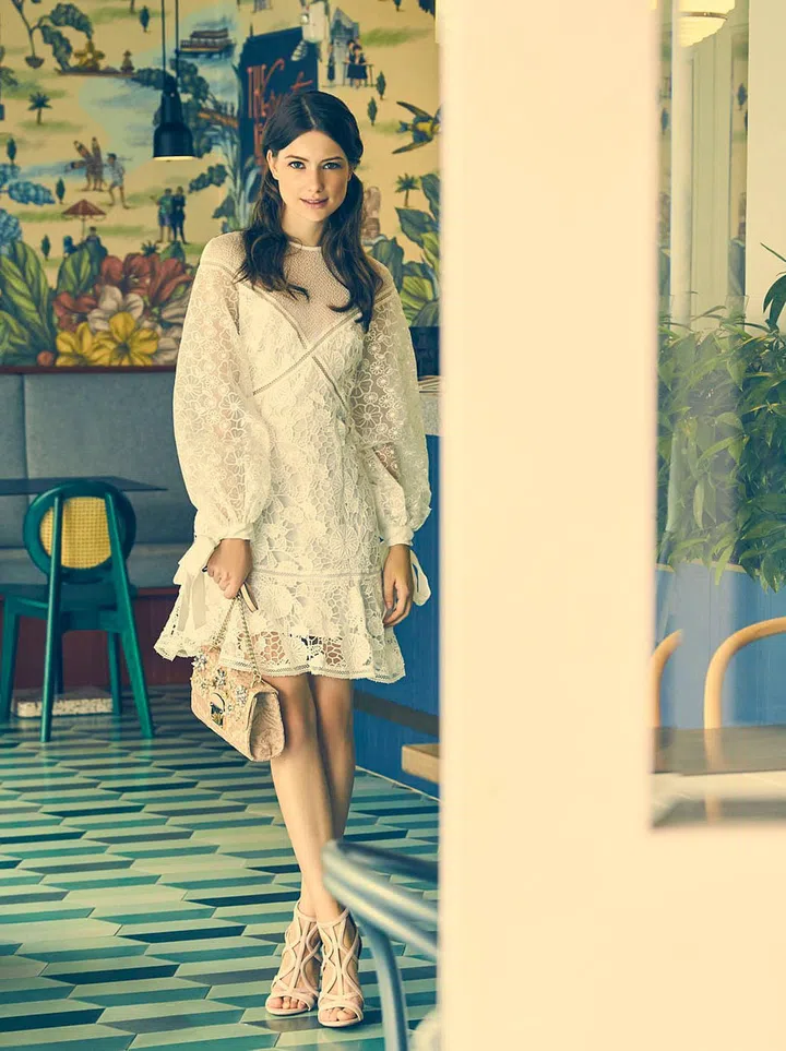 For Love & Lemons embroidered lace dress, $535, ECLECTICISM. Shoes, stylist's own.