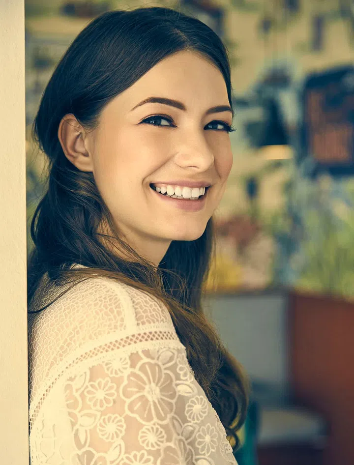 Relaxed hair and natural makeup give this romantic gown with a lace bodice and fluid skirts an effortless charm for solemnisation ceremonies or a casual setting. Amp it up with sparkling accessories and it'll transition effortlessly into a look that's perfect for a sophisticated luncheon or restaurant reception, too.