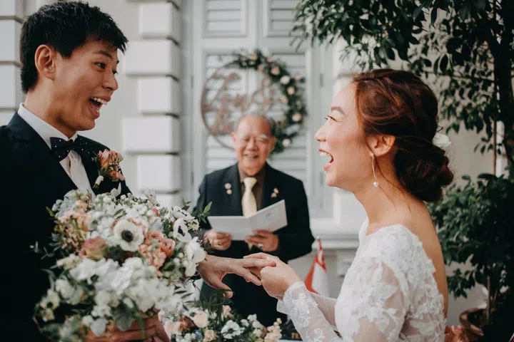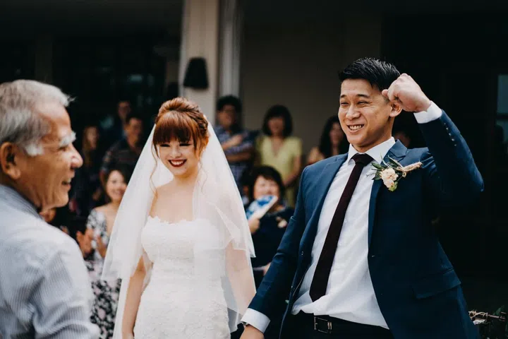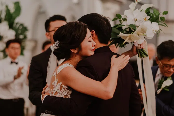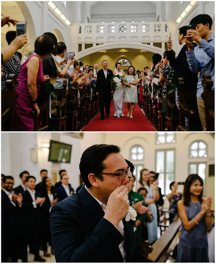"I hadn’t seen Jiezhen all morning and the anticipation had me crying my eyes out when I finally saw her at the top of the aisle." - groom Jared Kong on the moment he saw his bride