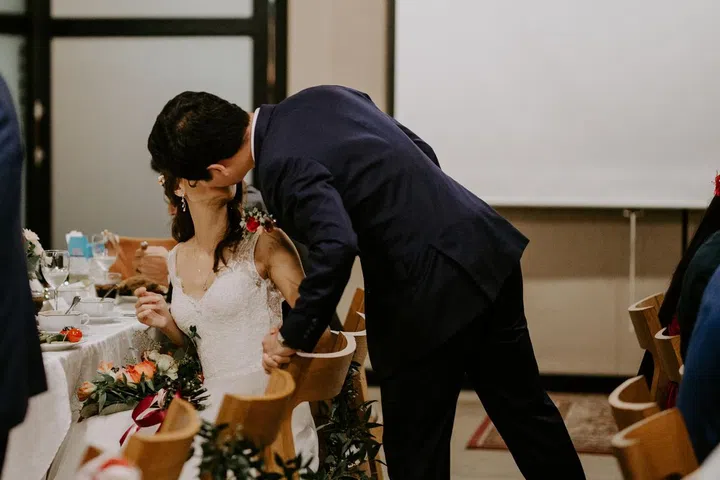Don't forget to take time out enjoy the moment just between the two of you - like how this sweet groom gave a quick kiss to his bride.
