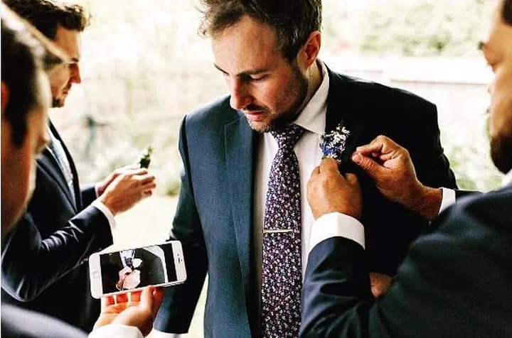 Boys will always be boys... even on the day of their wedding.
