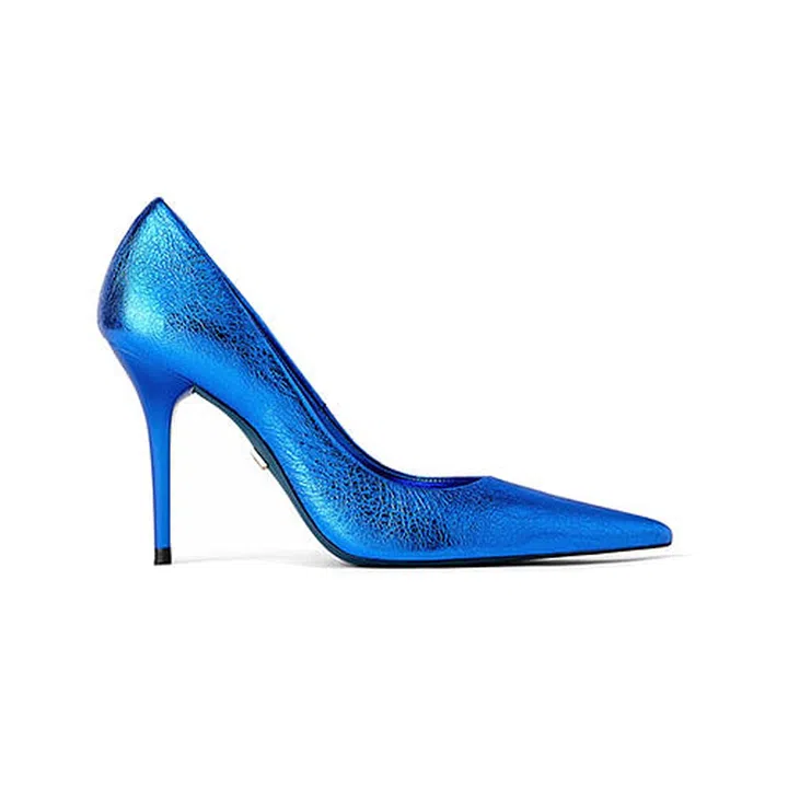 If black's too pedestrian for you, opt for this pair of blue pumps for a cooler, fresher alternative.