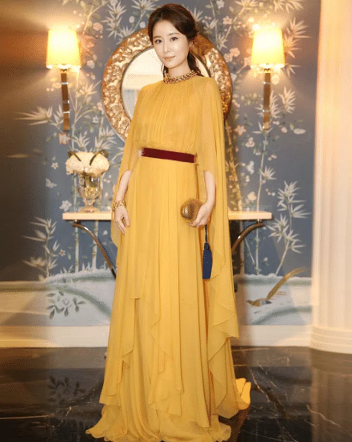 Attending the 20th Shanghai International Film Festival this week, new mum and My Fair Princess actress Ruby Lin looked every inch like a fairy who’d descended onto earth in this mustard yellow Alberta Ferretti gown.