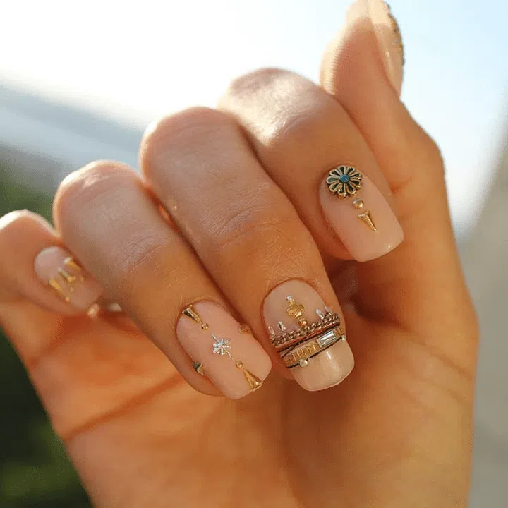 Give your nail art dimension with 3D embellishments. These beaded florals exude glamour and a regal air.